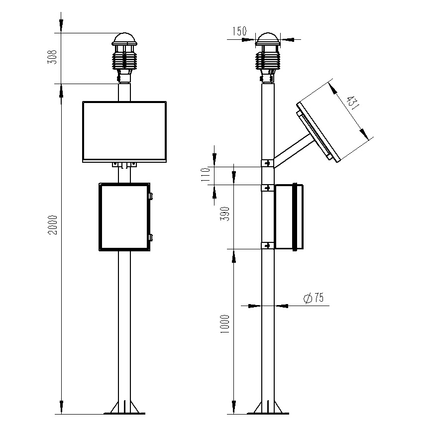 5.兩米碳(tan)鋼(gang)支架(jia),頂部(bu)無需法蘭盤可直接(jie)套接(jie)傳感器